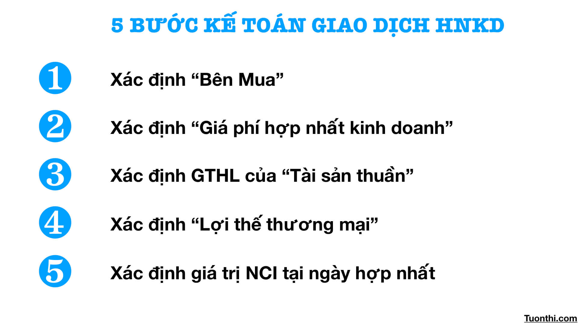 2. 5 bước kế toán giao dịch hợp nhất kinh doanh
